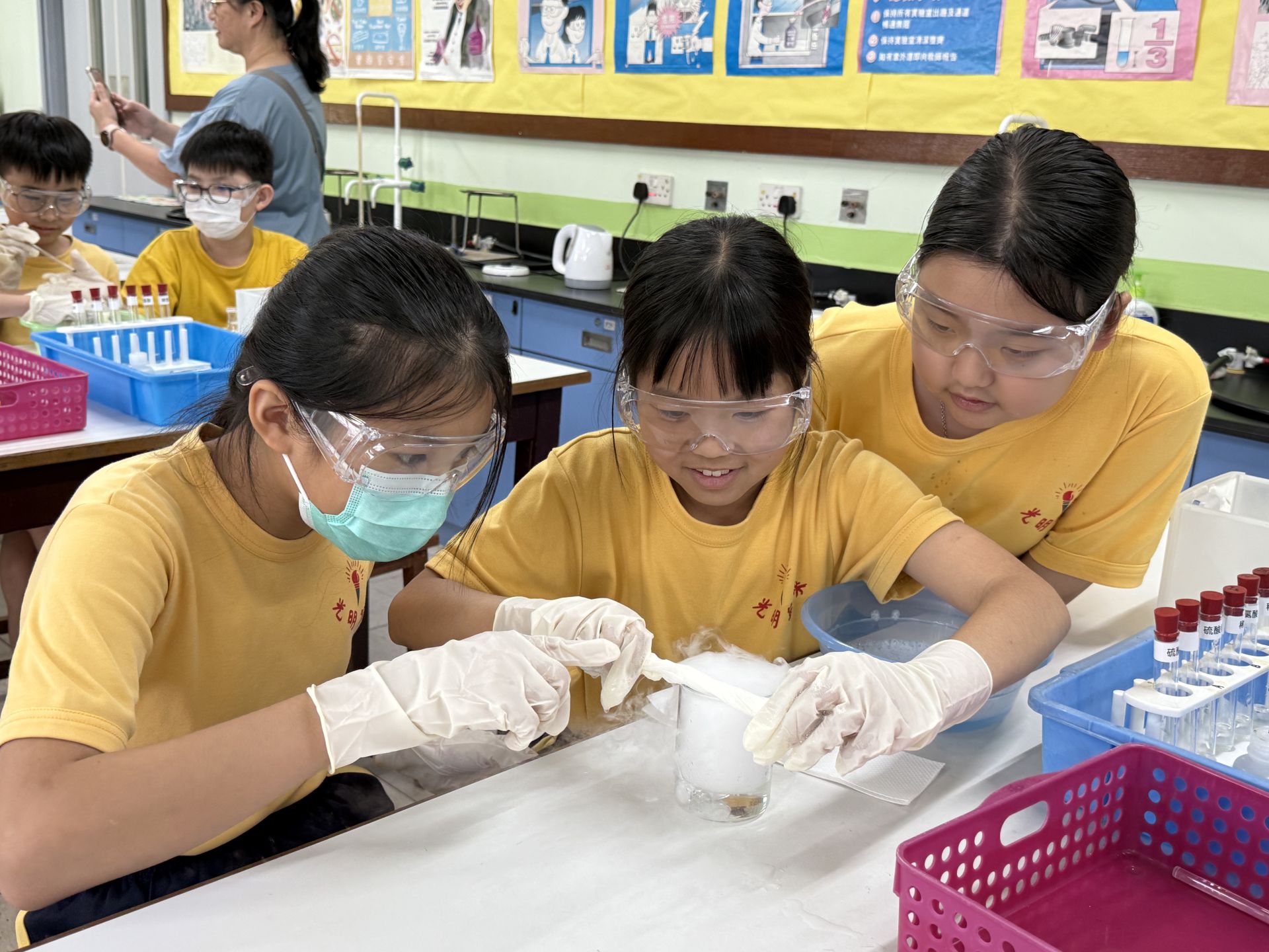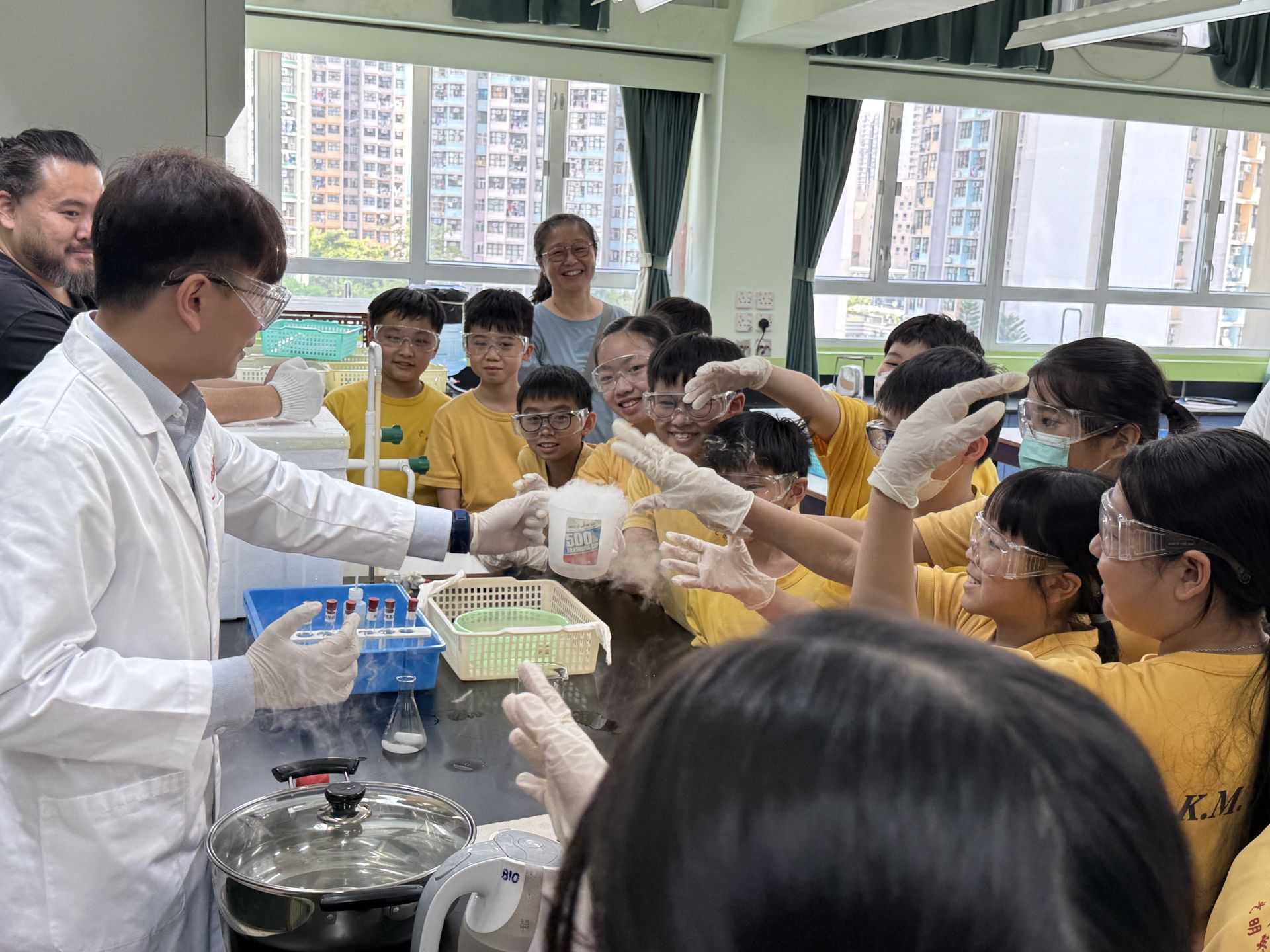 為促進與區內小學交流,本校於2025年9月26日舉辦本學年首次小學生體驗課。當日光明英來學校20名師生到校,共進行五個實驗活動,輕鬆體驗神奇的科學現象。