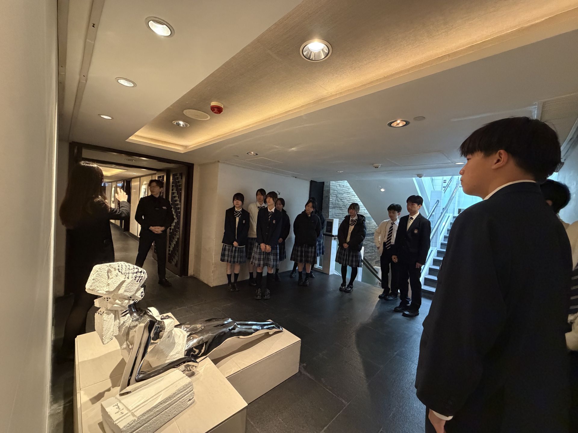 中五級旅遊與款待科前往香港康得思酒店,參加由酒店舉辦的餐桌禮儀工作坊及酒店參觀,透過講解和示範,學習如何佈置餐桌、閲讀菜單、辨識和使用餐具、安排座位;並安排午餐環節,以實踐正統的餐桌禮儀。