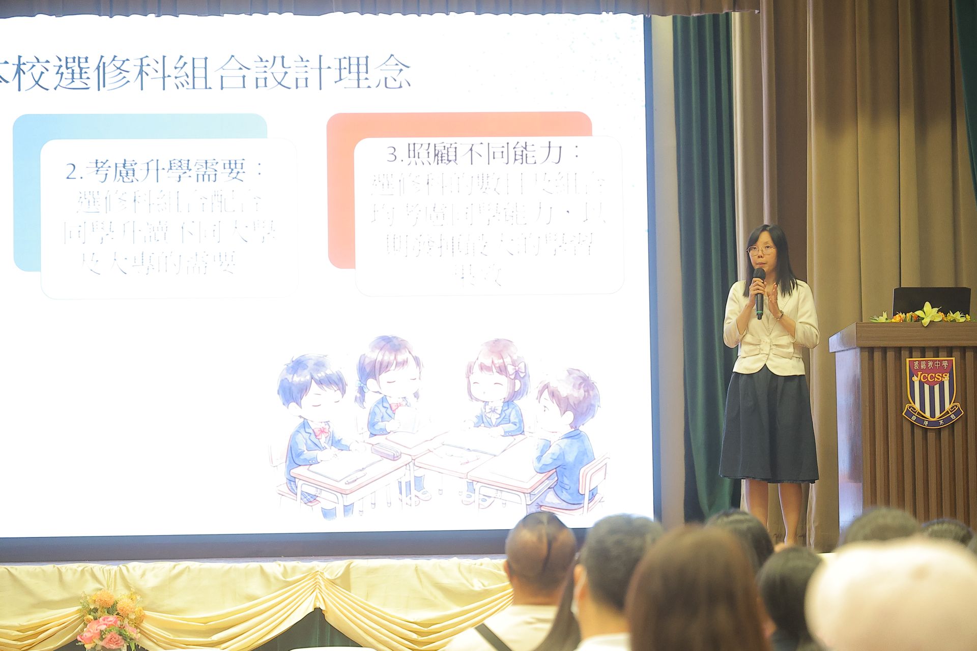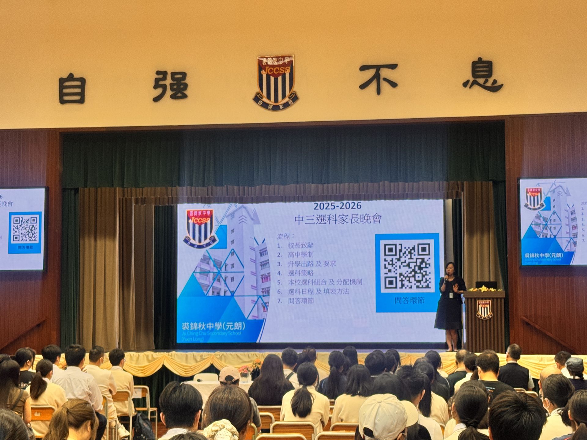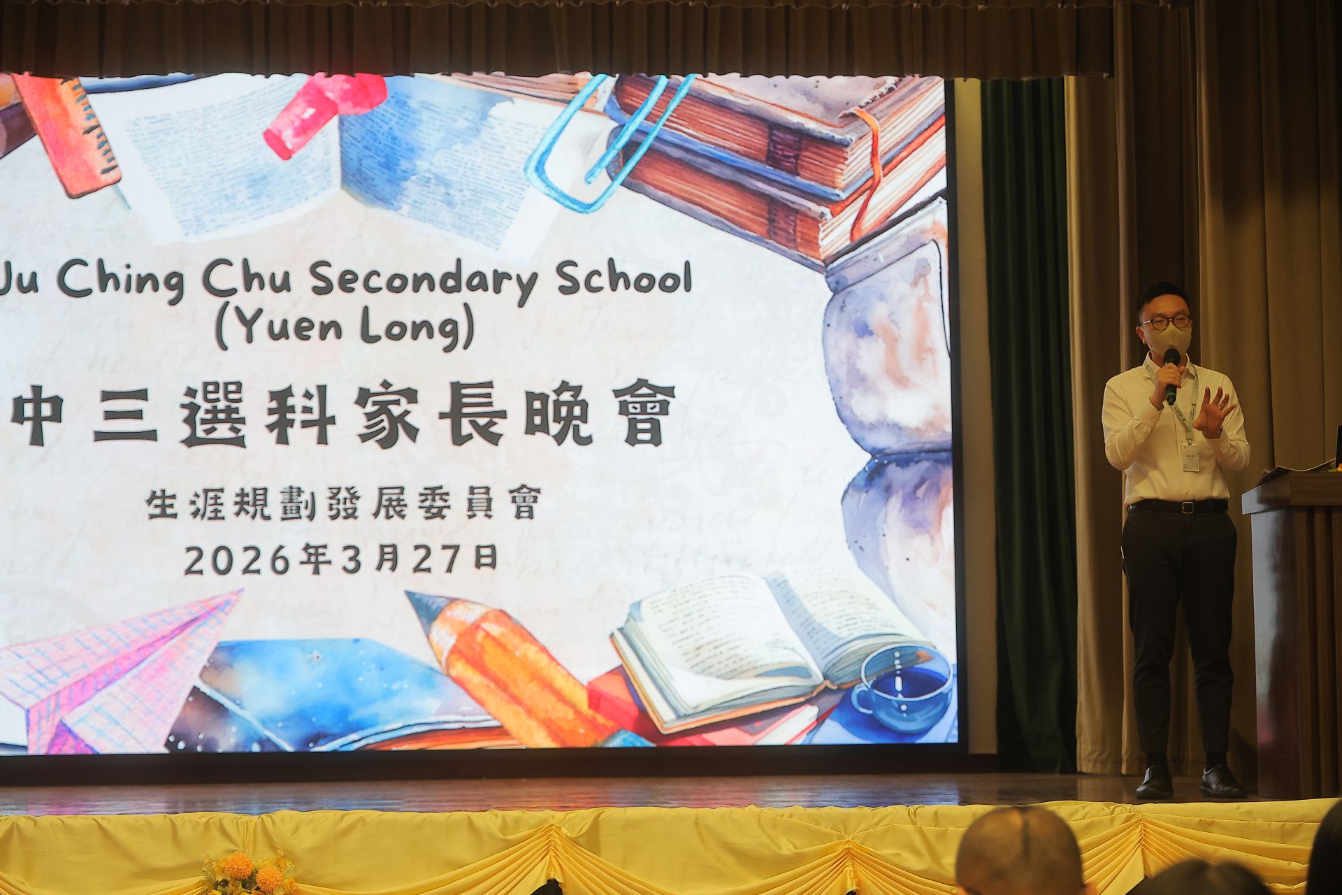 本校於3月27日圓滿舉行「中三選科家長晚會」。方鳳如校長致歡迎辭後,生涯規劃委員會及教務主任分別為家長深入剖析高中學制、多元升學出路、選科策略,以及本校的選科組合。是次晚會有效促進家校合作,攜手協助同學及早規劃合適的未來藍圖。