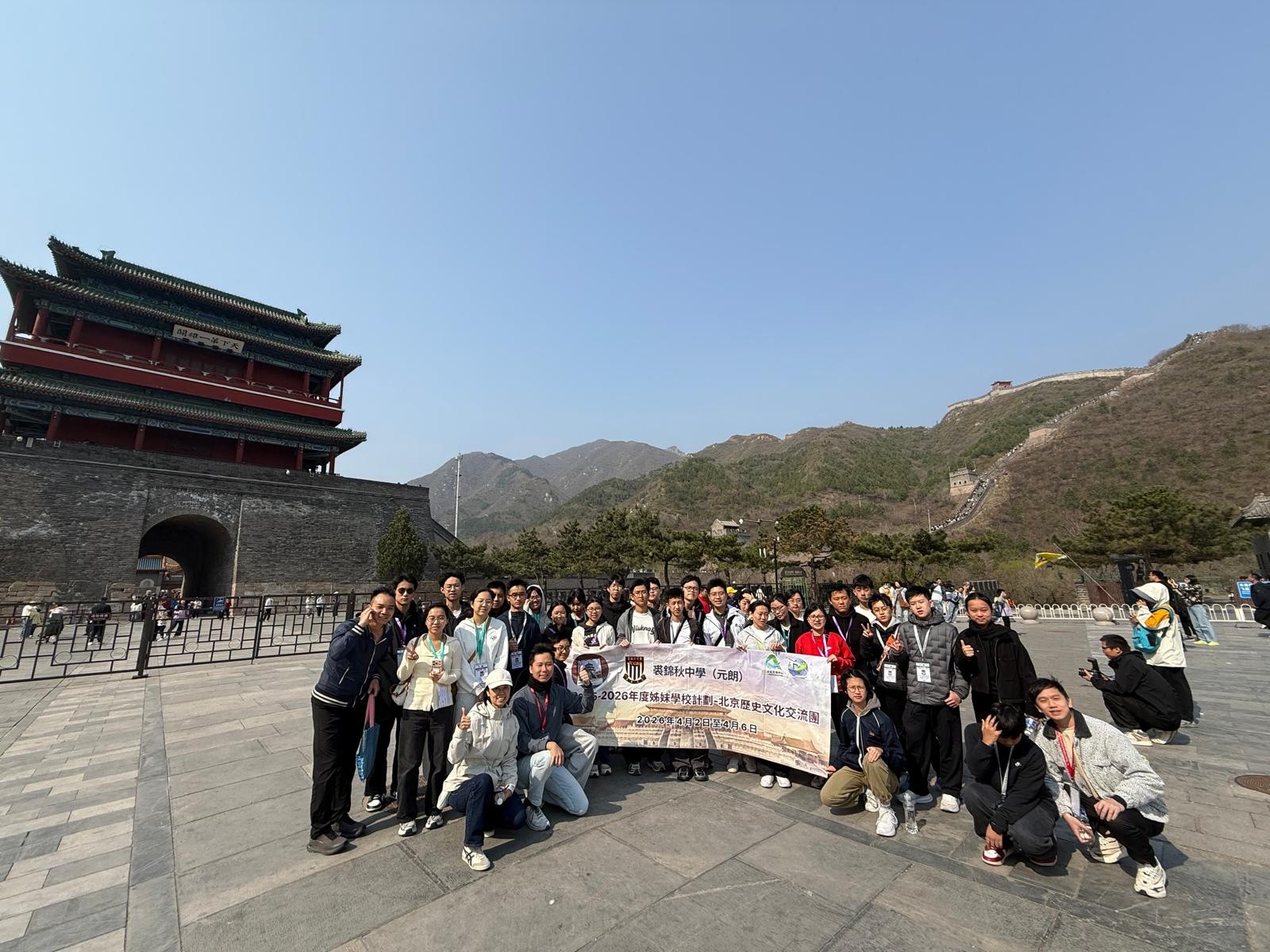 在復活節假期,我校共三十三名師生遠赴首都北京,展開為期五日四夜的「北京歷史文化考察團」。古語有云:「讀萬卷書不如行萬里路」,是次行程讓同學親身走訪多處具代表性的歷史文化建築,包括萬里長城、故宮博物院、天壇公園及頤和園等,從而加深對國家悠久歷史的認識,進一步提升國民身份認同感。