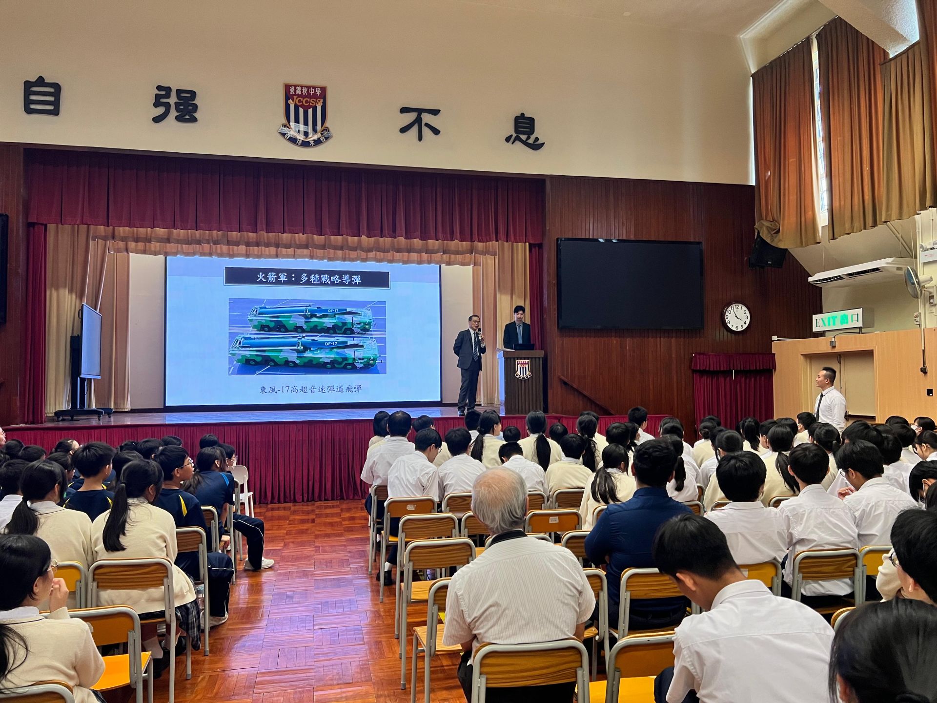 於25年9月25日安排禮堂周會講座,本校榮幸邀請港區全國政協委員張志剛先生到校分享中國軍事實力發展與國土安全的關係,讓同學可以深入認識國家的軍力發展與國家安全的重要關係。國情學習周活動加深同學對國家的民族認同感,從而培養對國家責任的承擔。