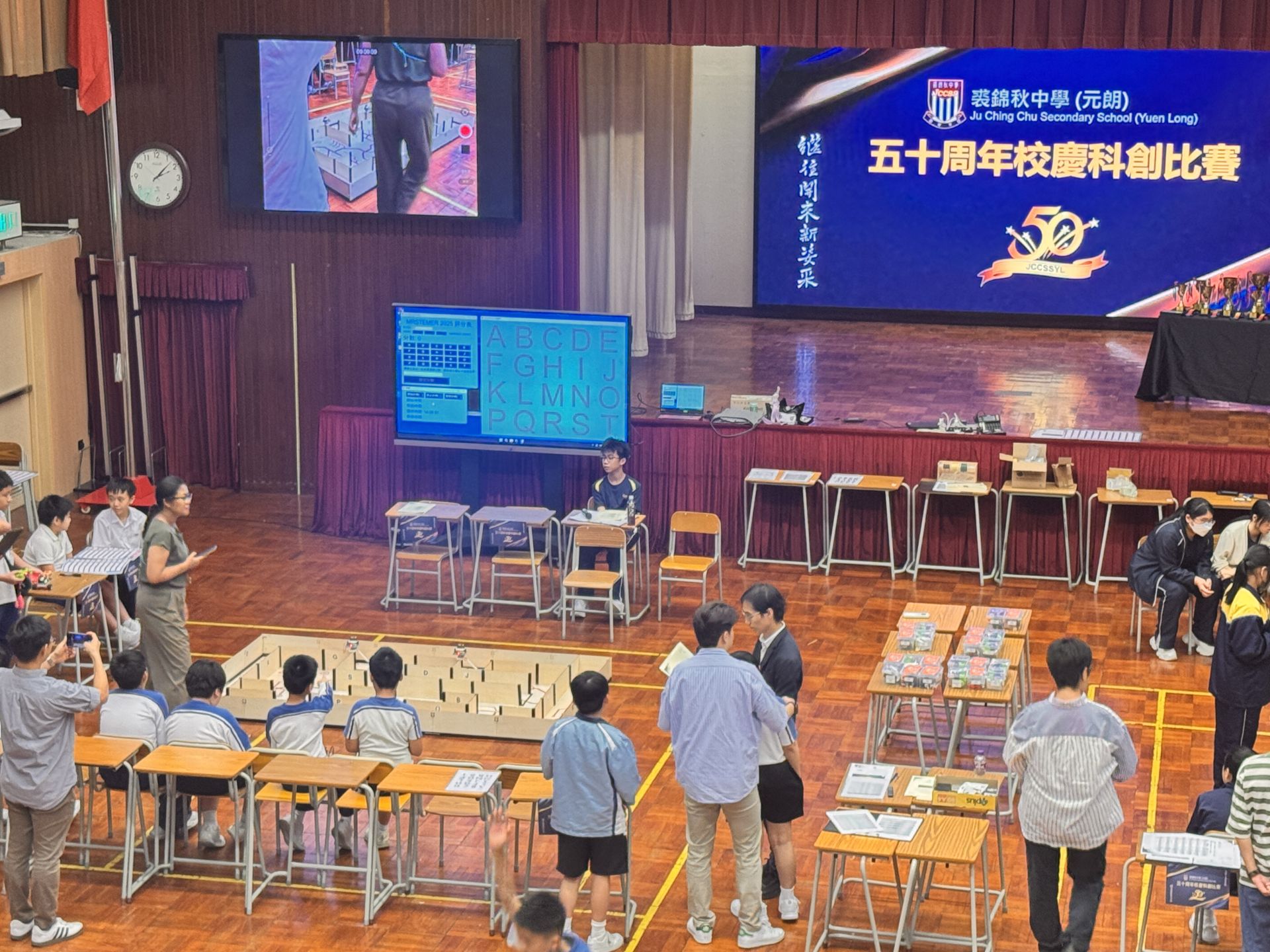 本校五十周年校慶科創比賽,匯聚多間小學隊伍參與。設有「尋字迷宮」AI及軌跡車「啟蒙組」賽項,結合編程、機械技術及中華造字文化,促進邏輯思維與問題解決能力。個參賽學校透過比賽互相學習觀摩,學生在競賽中體驗STEAM精神與合作創新,培養自學與探究態度,深化對人工智能與機械控制之理解。