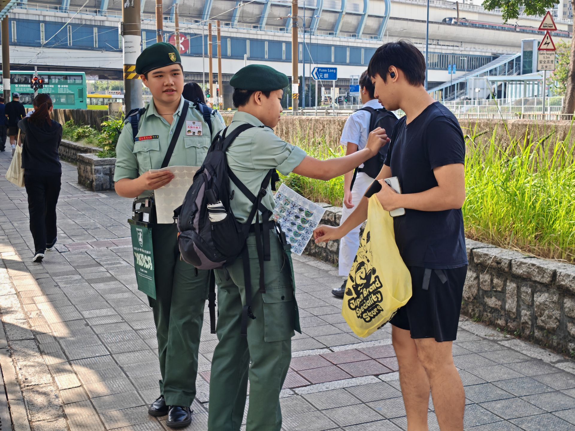 日協助香港青少年軍總會賣旗,讓隊員們學習如何群體合作和溝通能力,透過向居民賣旗,提升說話自信心。