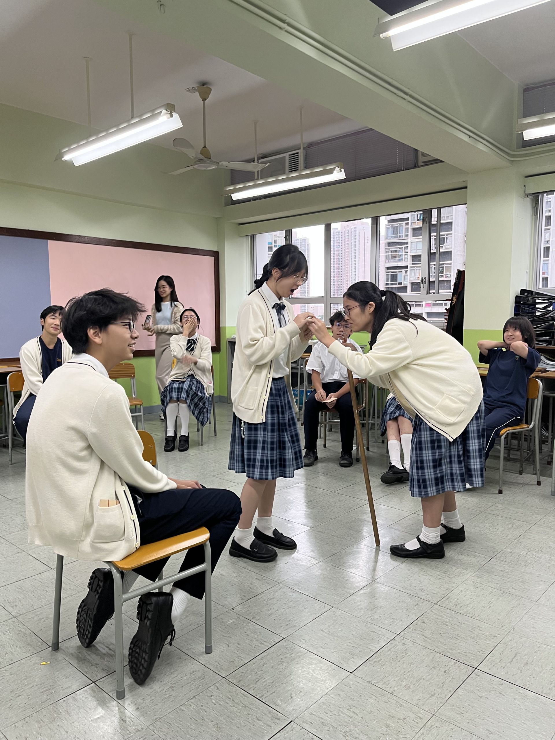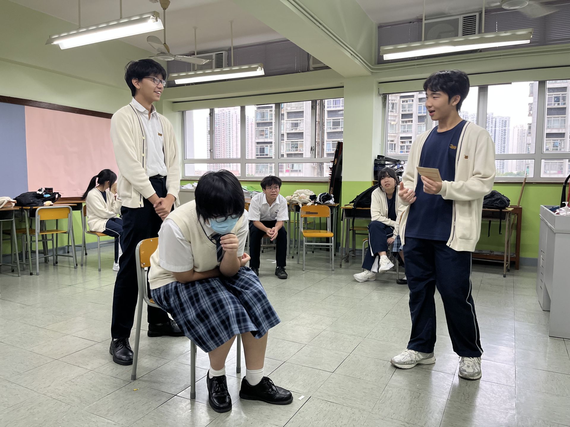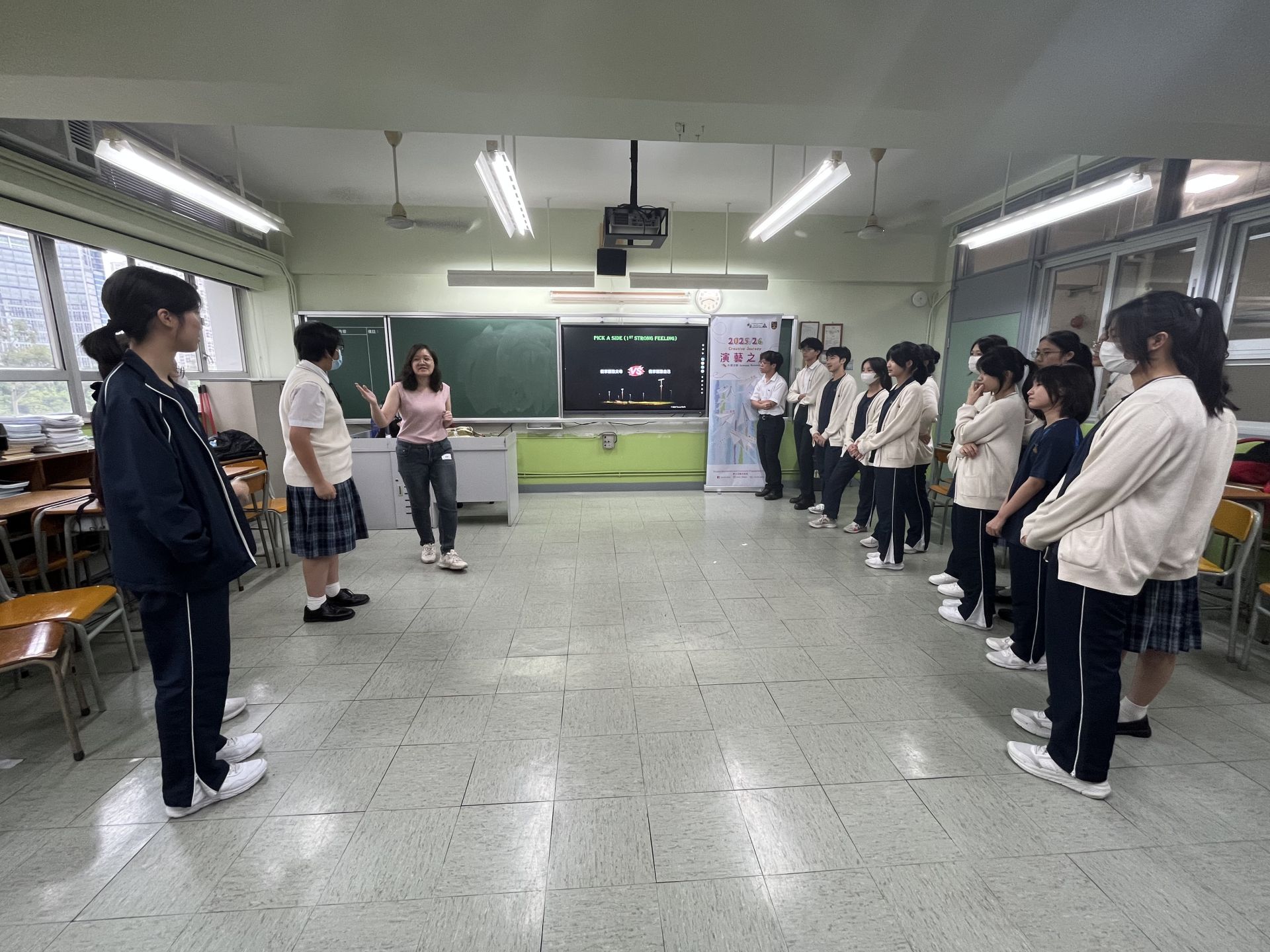 本校戲劇組同學參加由香港演藝學院主辦的《演藝之旅》藝術教育外展計劃,「戲劇進行中」到校戲劇工作坊。以演出劇目内容為主題,為同學設計一系列戲劇活動,讓同學們更主動表達自己,學習舞台表演技巧。