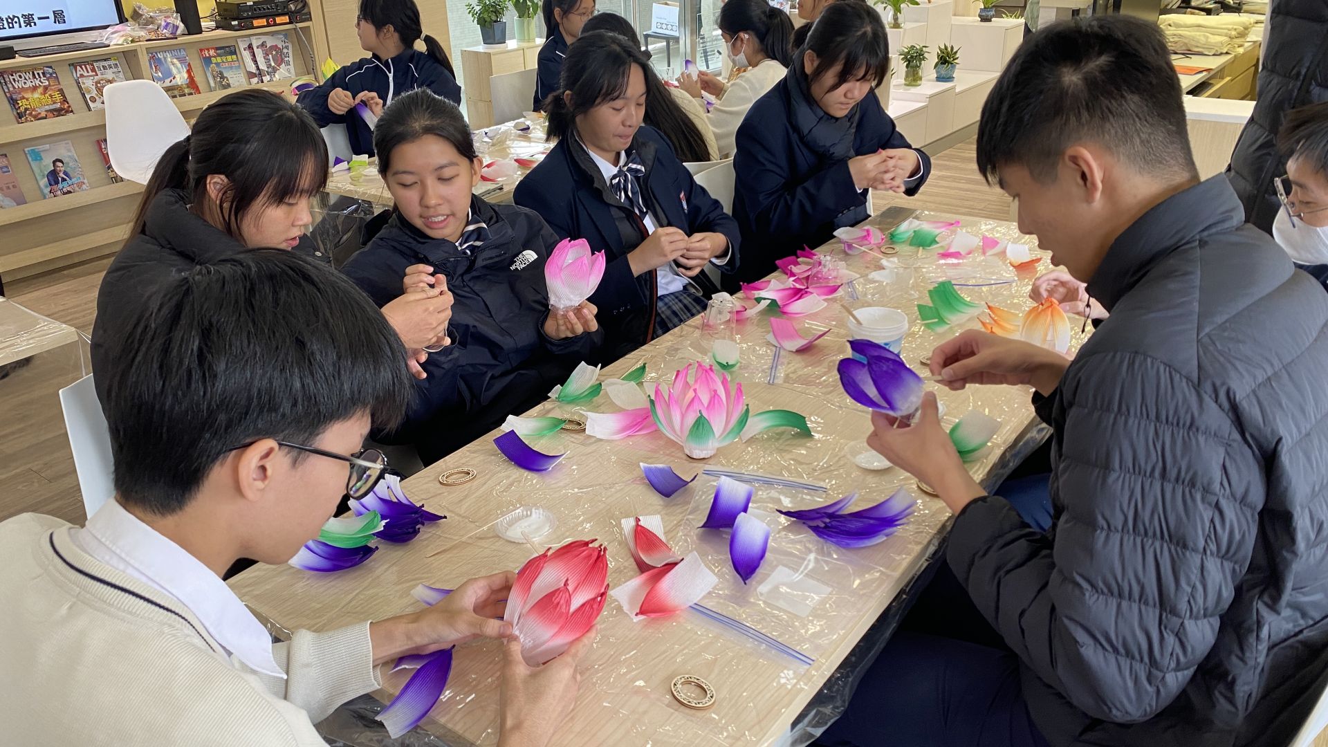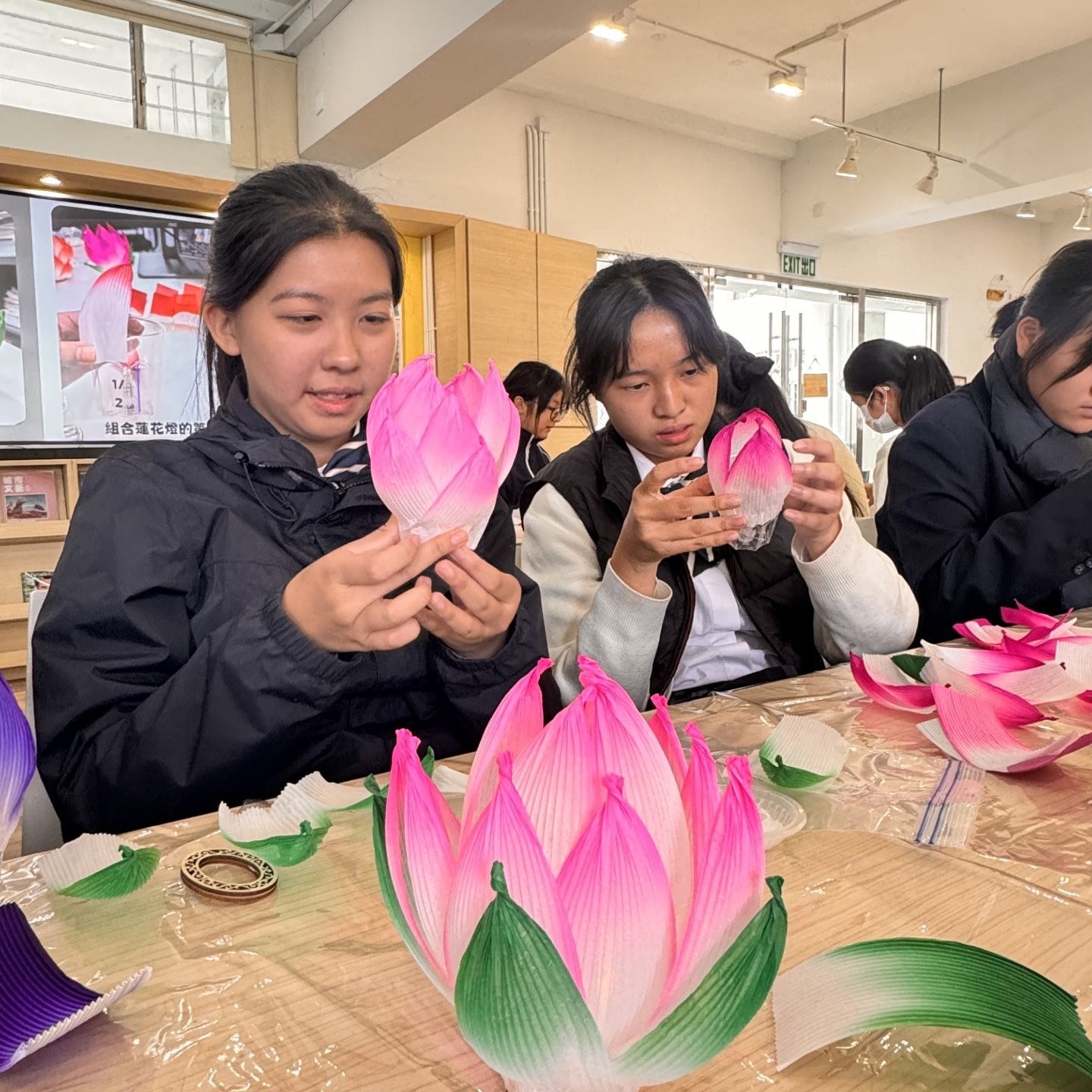 活動中,老師講解蓮花燈的文化意義及推薦相關閱讀,同學們透過STEAM理念親手製作蓮花燈,體驗傳統工藝的魅力。這既是對文化的探索,也是對校慶的創意獻禮!