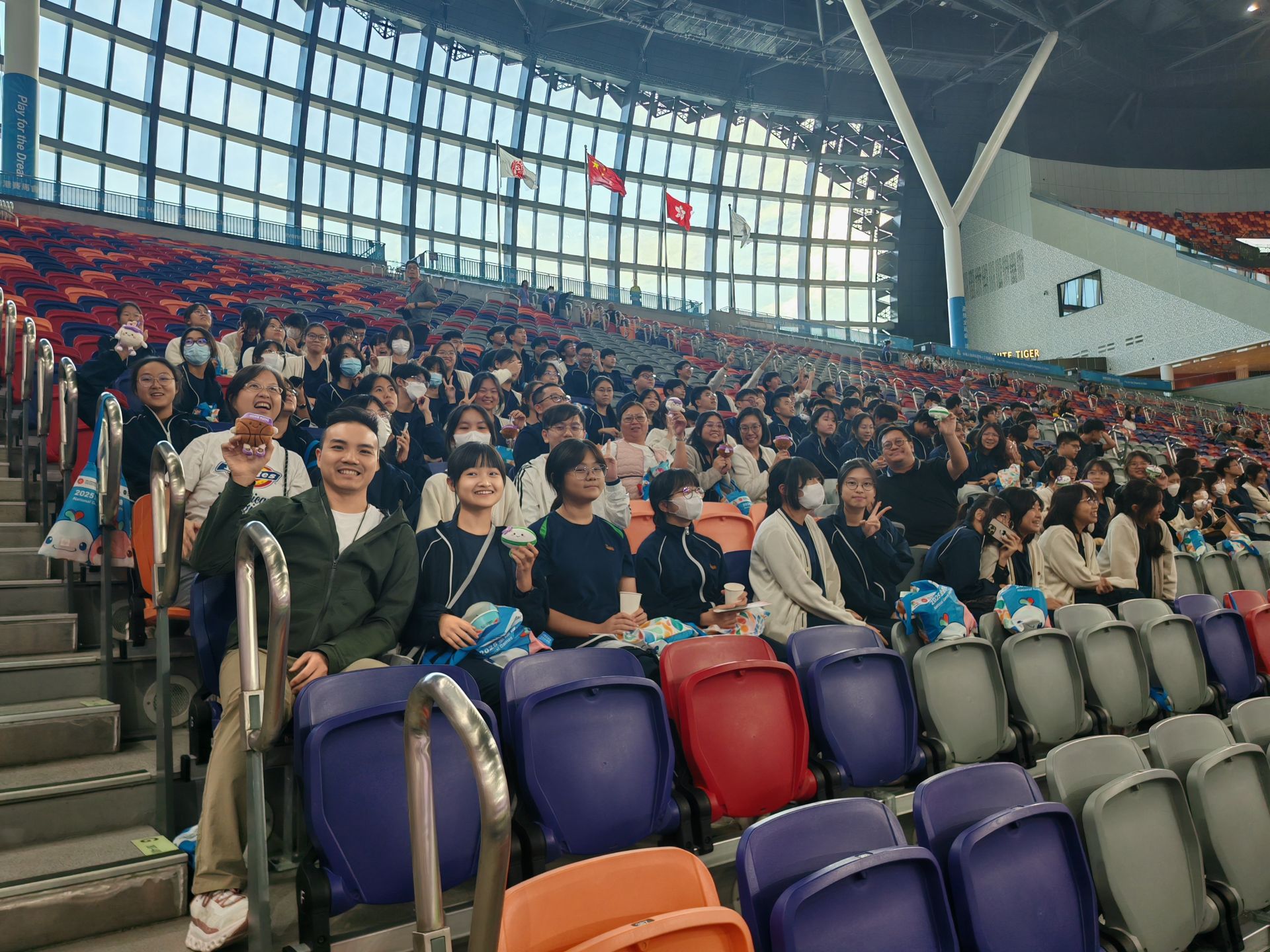 本校師生於2025年11月12日前往啟德體育園主場館,現場觀看第十五屆全國運動會七人欖球賽事,為香港隊「打氣」。活動讓同學們走出課室,近距離學習欖球運動,支持本地體育發展;同學可以親身體驗大型體育盛事的氛圍,理解盛事籌辦流程及多部門協作,透過今次經歷,學生不僅提升體育素養,亦增強國民身份認同,見證香港作為全運協辦城市的責任與榮耀。