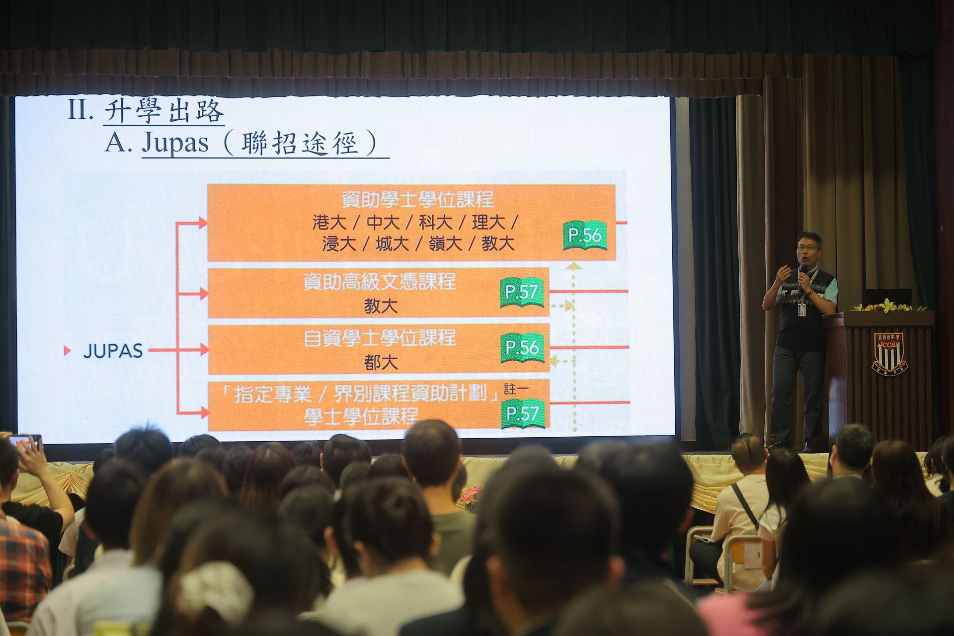 本校於3月27日圓滿舉行「中三選科家長晚會」。方鳳如校長致歡迎辭後,生涯規劃委員會及教務主任分別為家長深入剖析高中學制、多元升學出路、選科策略,以及本校的選科組合。是次晚會有效促進家校合作,攜手協助同學及早規劃合適的未來藍圖。