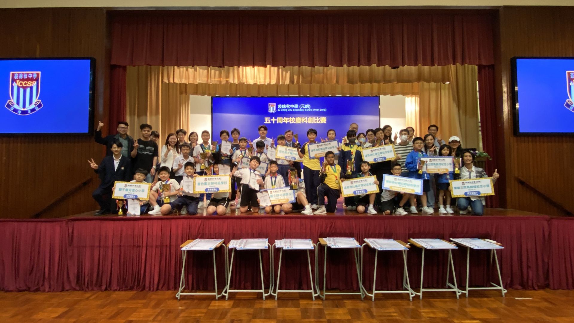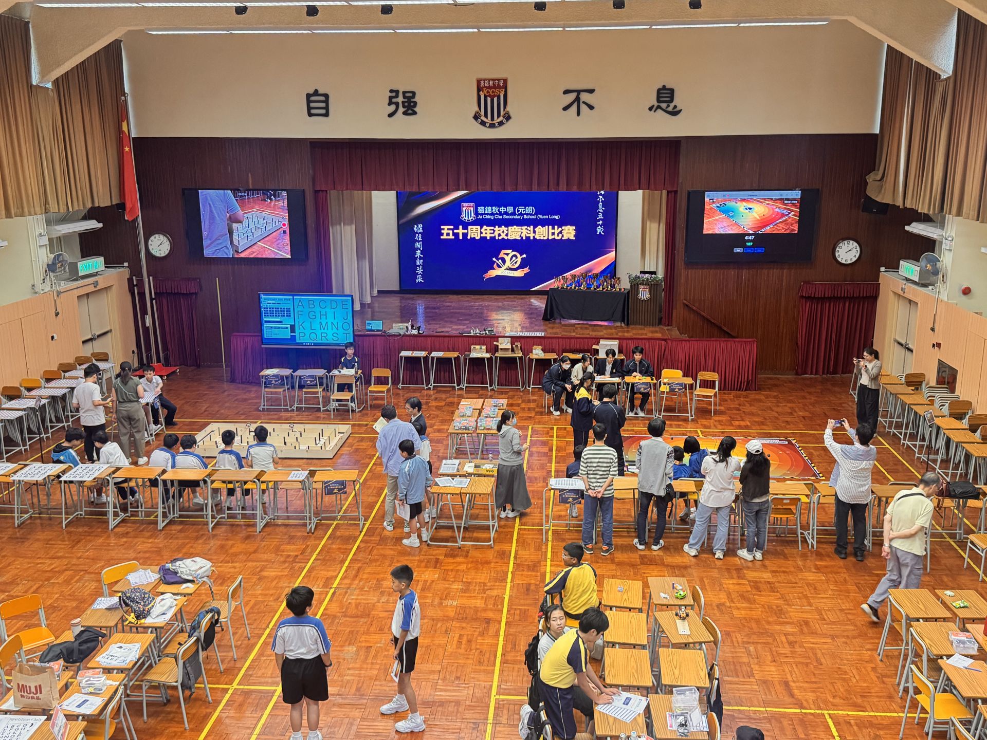 本校五十周年校慶科創比賽,匯聚多間小學隊伍參與。設有「尋字迷宮」AI及軌跡車「啟蒙組」賽項,結合編程、機械技術及中華造字文化,促進邏輯思維與問題解決能力。個參賽學校透過比賽互相學習觀摩,學生在競賽中體驗STEAM精神與合作創新,培養自學與探究態度,深化對人工智能與機械控制之理解。