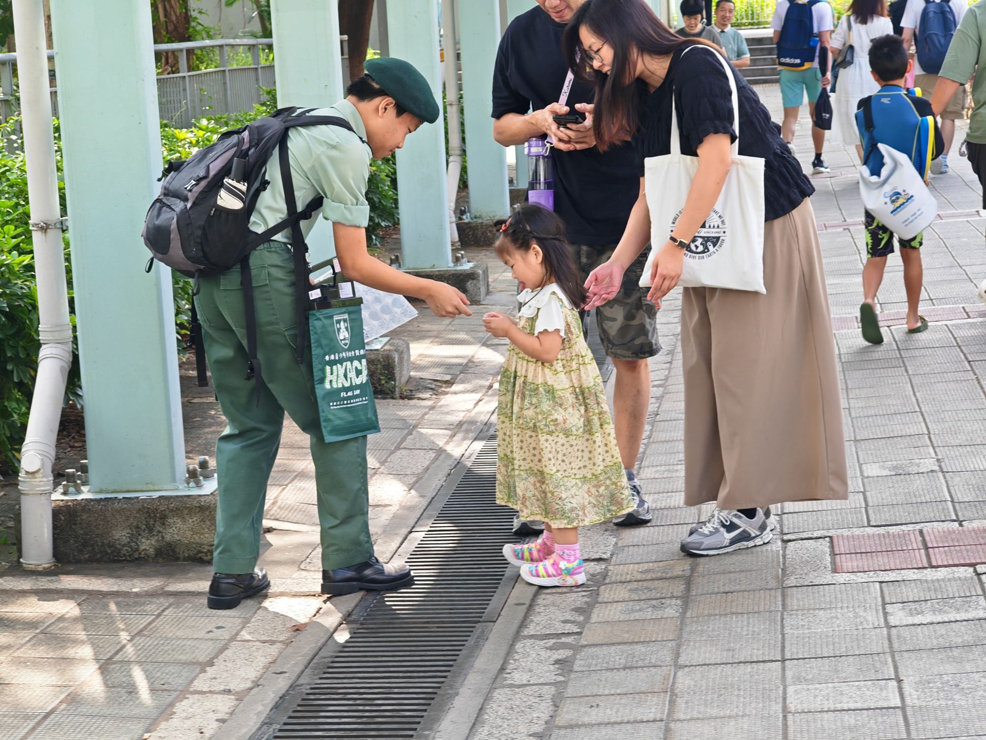 日協助香港青少年軍總會賣旗,讓隊員們學習如何群體合作和溝通能力,透過向居民賣旗,提升說話自信心。