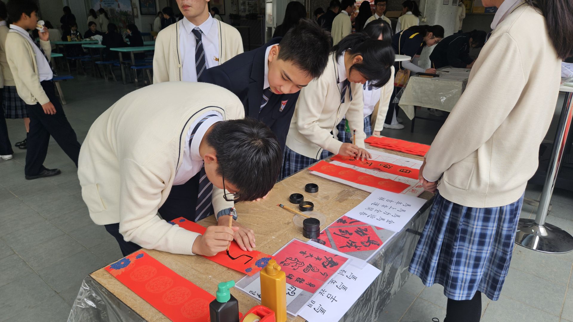 為迎接新春佳節,本校中華文化周舉辦一連串精彩活動,讓師生共同感受傳統節慶的魅力。活動內容豐富多彩,包括技藝精湛的中式雜耍表演;變臉大師將瞬間變換臉譜,展現戲曲藝術的奇幻奧妙。現場亦設有揮春創作攤位,同學可即席揮毫,寫下新年祝福。此外,特式香囊製作工作坊讓同學親手縫製蘊含傳統配方的芳香藥草香囊,既驅邪避疫,又寄寓平安吉祥。文化周旨在透過多元互動體驗,讓同學從不同角度認識中華文化精髓,在歡樂氣氛中傳承傳統技藝,同慶新春佳節。